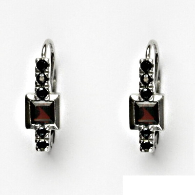 Dámské náušnice jsou vyrobeny z bílého zlata a jsou zdobeny přírodními granáty . Materiál je zlato 585/1000. Celková výška náušnice je 18 mm. Rozměr zdobné části je 15x6 mm. Náušnice mají zapínání na klapku a jsou rhodiované.