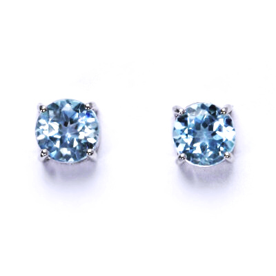 Zlaté náušnice, bílé i žluté zlato, přírodní topaz sky 8 mm - NŠ 1357