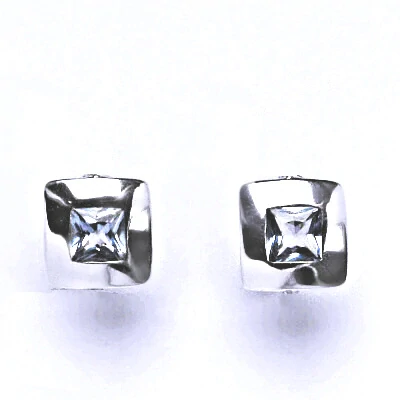 Zlaté náušnice jsou zdobeny zirkonem akvamarinem čtvercového tvaru