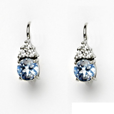 Náušnice z bílého zlata zdobí čiré zirkony a zirkon Akvamarin