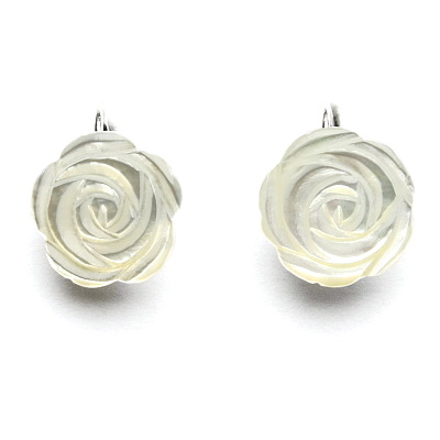 Zlaté náušnice jsou zdobeny růží z přírodní bílé perleti .