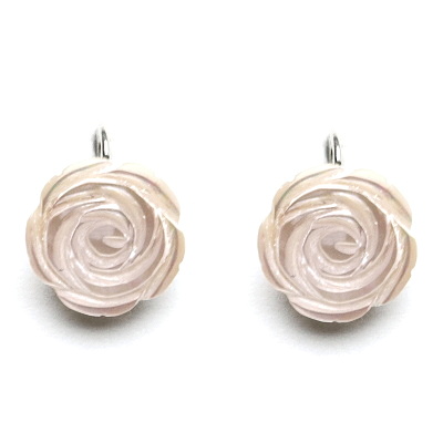Zlaté náušnice jsou zdobeny růží z přírodní bílé perleti .
