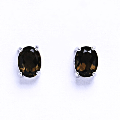 Zlaté naušnice, přírodní záhněda 8x6 mm, bílé i žluté zlato - NŠ 1245