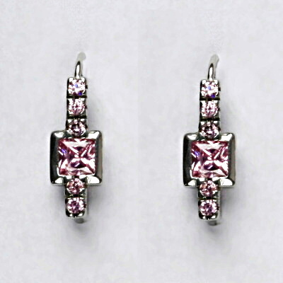 Dámské náušnice jsou vyrobeny z bílého zlata a jsou zdobeny růžovými zirkony . Materiál náušnic je zlato 585/1000. Celková výška náušnice je 18 mm. Rozměr zdobné části je 15x6 mm. Náušnice mají zapínání na klapku.