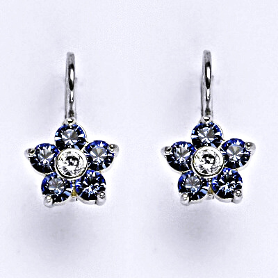 Dámské náušnice z bílého zlata mají tvar kytičky a jsou zdobeny Swarovski krystaly. Materiál je zlato 585/1000. Rozměr kytičky je 10 mm. Náušnice mají zapínání na patent. Celková výška náušnice je 15 mm. Orientační váha náušnic je 2,69 g. Povrchová úprava - rhodium - u bílého zlata.