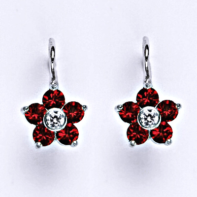 Dámské náušnice z bílého zlata mají tvar kytičky a jsou zdobeny Swarovski krystaly. Materiál je zlato 585/1000. Rozměr kytičky je 10 mm. Náušnice mají zapínání na patent. Celková výška náušnice je 15 mm. Orientační váha náušnic je 2,69 g. Povrchová úprava - rhodium - u bílého zlata.