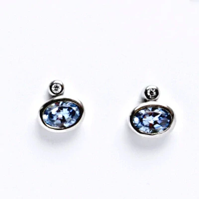 Náušnice na šroubkové zapínání z bílého zlata zdobené zirkonem čirým a akvamarinem