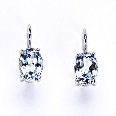 Zlaté náušnice zdobí zirkon akvamarin světlý o rozměru 8 x 6 mm.