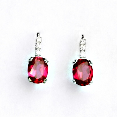 Náušnice zdobí čiré zirkony a zirkon rubín