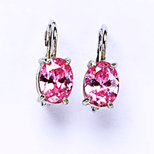 Zlaté náušnice zdobí syntetický zirkon pink o rozměru 8 x 6 mm.