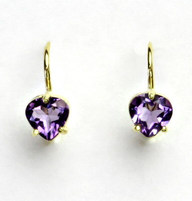 Zlaté náušnice, žluté i bílé zlato, srdíčka, přírodní ametyst sv. - NK 1362