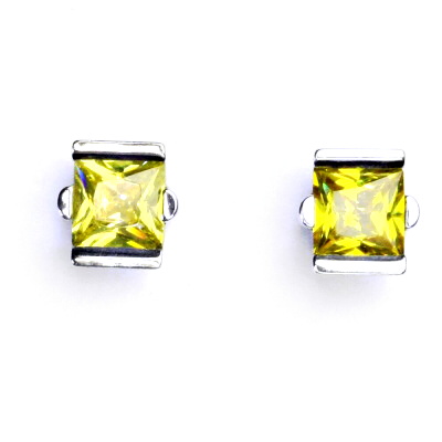 Zlaté náušnice na šroubkové zapínání zdobí syntetický zirkon o rozměru 6 x 6 mm.