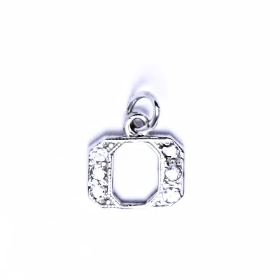 Zlatý přívěsek písmenko O je zdobeno čirými zirkony. Materiál je zlato 585/1000. Rozměr přívěsku je 15 mm včetně očka a 10 mm na šířku. Orientační váha přívěsku je 0,79 g.