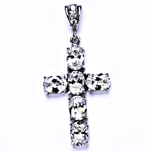 Zlatý křížek osazený šesti zirkony o velikosti 7 x 5 mm