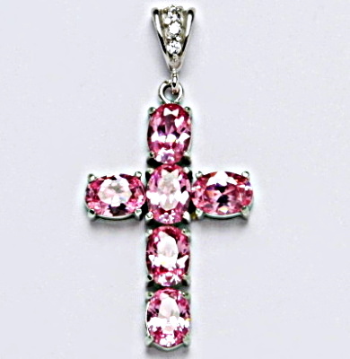 Zlatý přívěšek křížek, bílé i žluté zlato, pink zirkony - P 1238