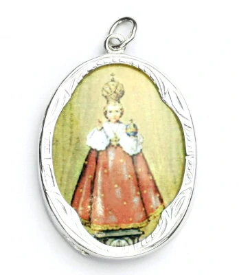 Zlatý přívěsek medailon, porcelánové Pražské Jezulátko, bílé zlato - P 158