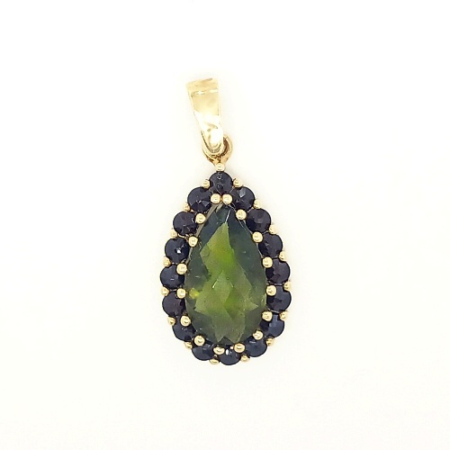 Zlatý přívěsek, přírodní vltavín a přírodní granáty , žluté zlato - 3,46 g
