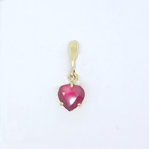 Zlatý přívěsek s přírodním kamenem rubínem ve tvaru srdíčka o rozměru 7 x 7 mm.