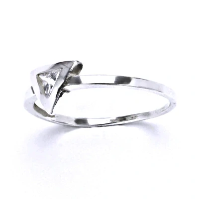 Zlatý prsten ve tvaru trojúhelníku je zdoben čirým zirkonem