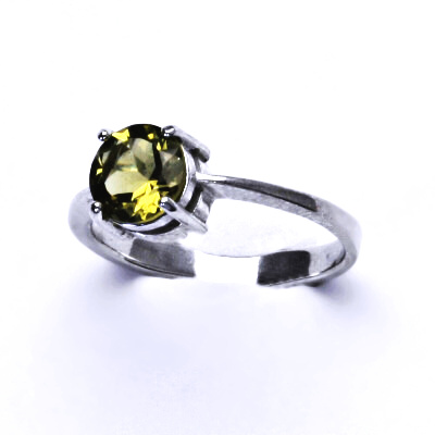 Prsten z bílého zlata zdobí přírodní kámen olivový křemen .