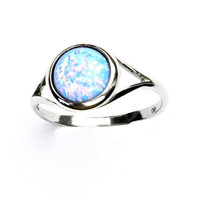 Zlatý prsten zdobí syntetický opál o průměru 8 mm .
