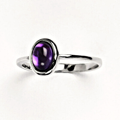 Prsten ze bílého zlata zdobí přírodní kámen Ametyst tmavý