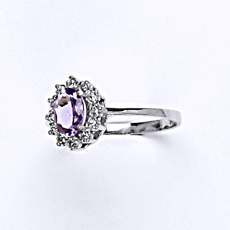 Zlatý prsten s diamanty, přírodní světlý ametyst , bílé i žluté zlato - VR 247