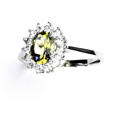 Zlatý prsten, žluté i bílé zlato,Kate, přírodní olivový křemen, čiré zirkony, T 1507