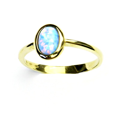Zlatý prsten je zdoben syntetickým opálem o rozměru 7 x 5 mm.