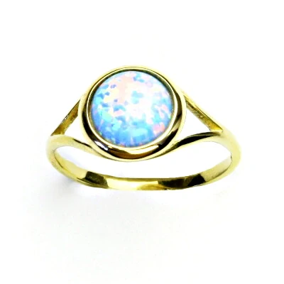 Zlatý prsten zdobí syntetický opál o průměru 8 mm .